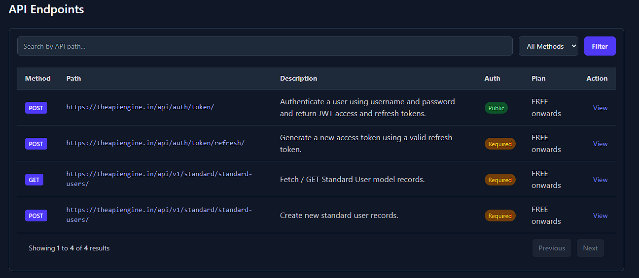 The APIEngine Free plan is designed for developers who want to evaluate APIs in a real-world environment without setup overhead or infrastructure management. You get instant access to production-grade APIs with realistic data models, predictable behavior, and clearly defined limits.